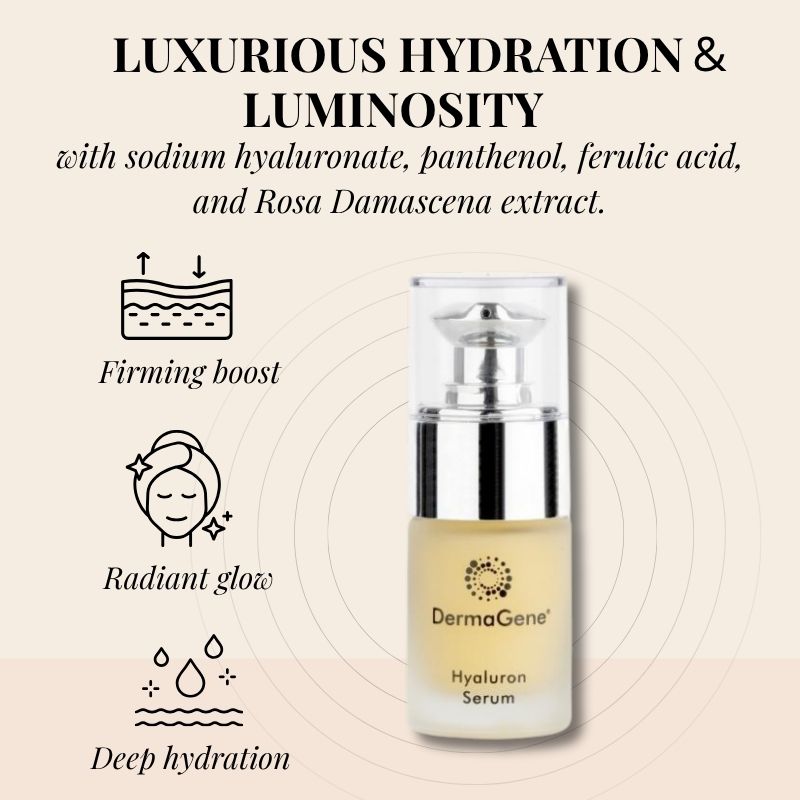 DermaGene Hialuron FaceSerum is a uniquely developed, high-tech formula designed to deliver intensive, long-lasting hydration while fully supporting the skin’s natural renewal process. Thanks to its carefully selected natural ingredients, the serum absorbs effortlessly, leaves no greasy residue, and remains exceptionally gentle even on sensitive skin. Its lightweight yet highly bioactive composition enhances elasticity, restores suppleness, and boosts radiance from the very first application. Developed to work in perfect synergy with the most advanced beauty technologies — including microcurrent, ultrasound, and radiofrequency — it allows active ingredients to reach deeper layers of the skin with ease, amplifng the effectiveness of every treatment. Used alone or paired with your favorite device, it leaves the complexion smoother, plumper, refreshed, and beautifully luminous.