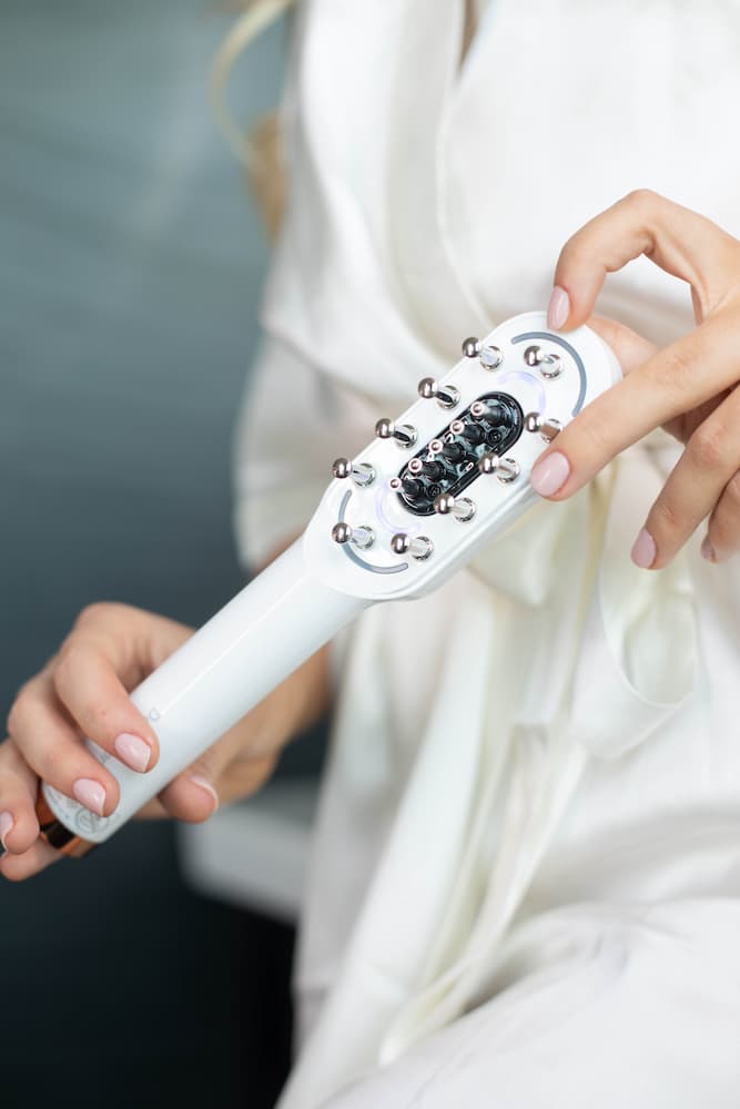 Gentle electrical pulses enhance microcirculation and follicle metabolism, jump-starting new growth.